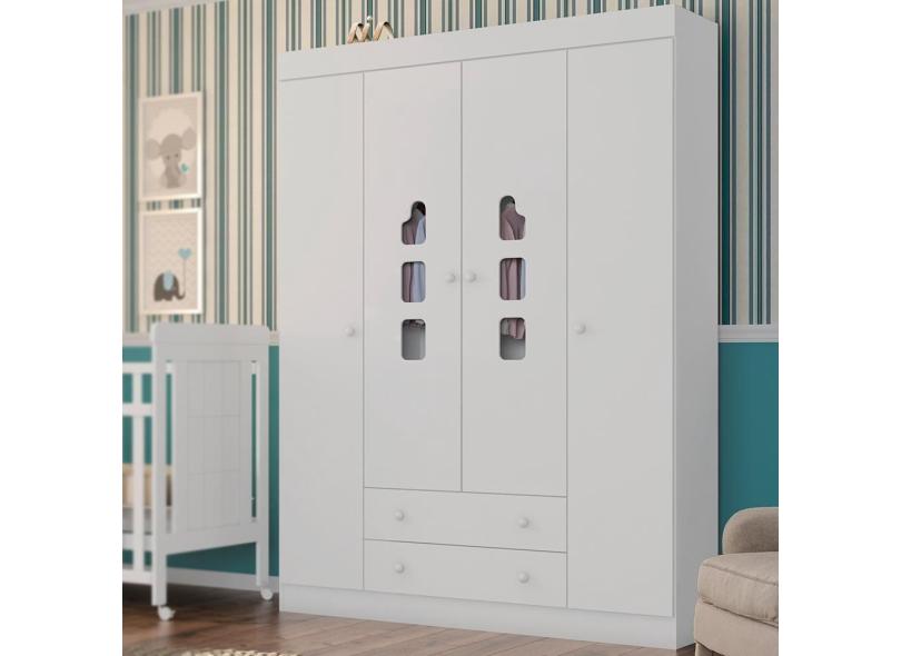 Roupeiro Branco Infantil 4 Portas 2 Gavetas Léo Jm Móveis Baby