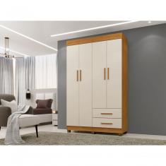 Roupeiro Copacabana New 4 Portas 2 Gavetas Benetil Cor:cinamomo/off