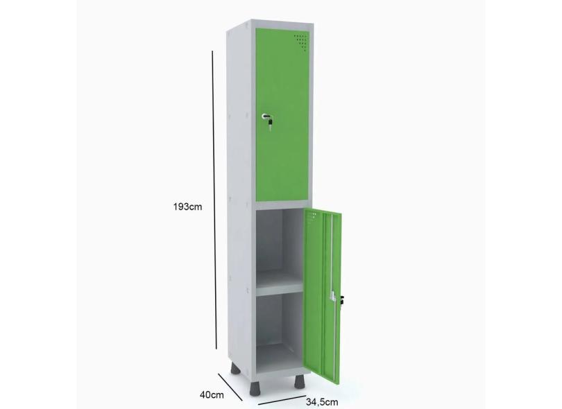 Roupeiro de aço 1M 02 portas c/ prat. fechadura pandin - cinza/verde