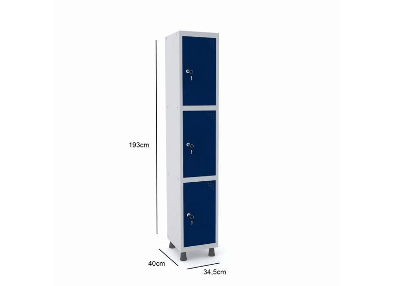 Roupeiro de aço 1M 03 portas fechadura pandin - cinza/azul del rey