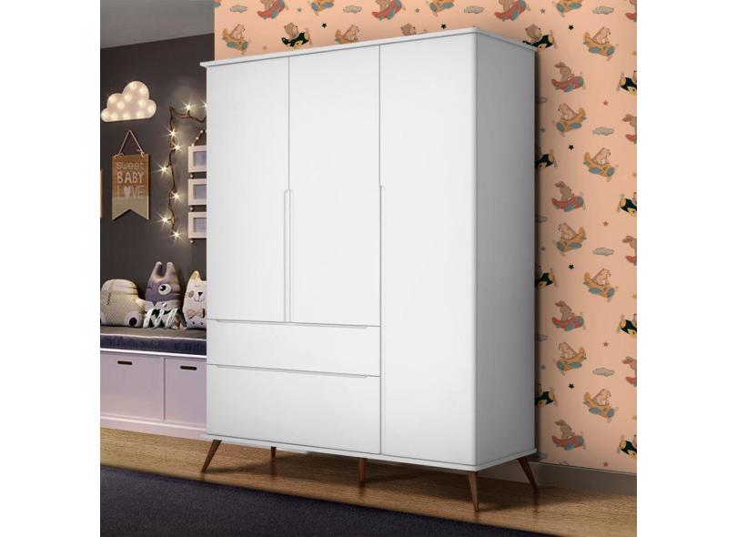 Roupeiro Infantil Melinda Branco 3 Portas e 2 Gavetas - Phoenix Baby