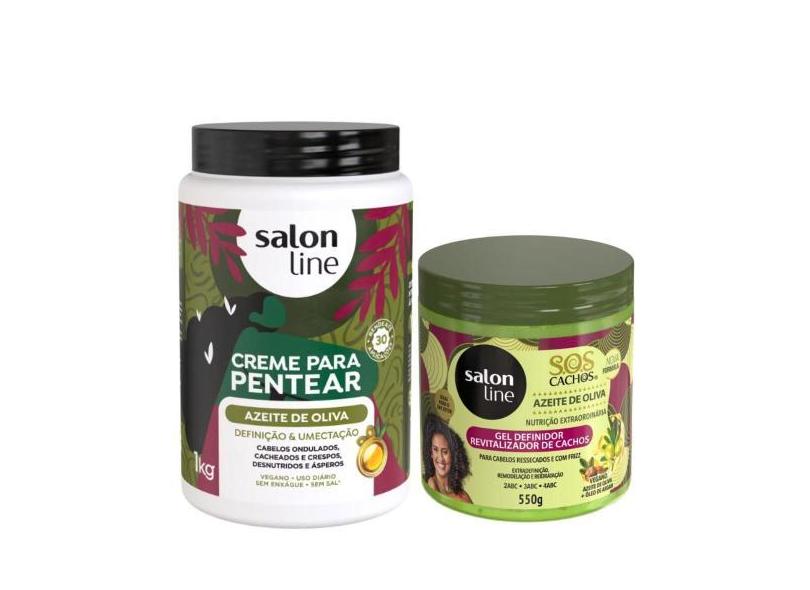 Creme Para Pentear + Gel Definidor Salon Line Azeite De Oliva