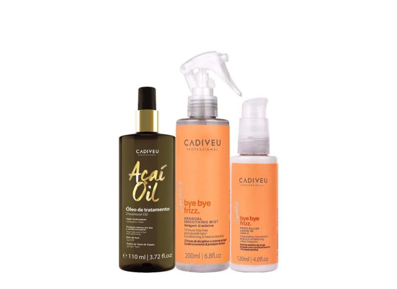 Kit Cadiveu Professional Bye Bye Frizz Selagem Gradativa Leave-in e Açai Oil 110 (3 produtos)