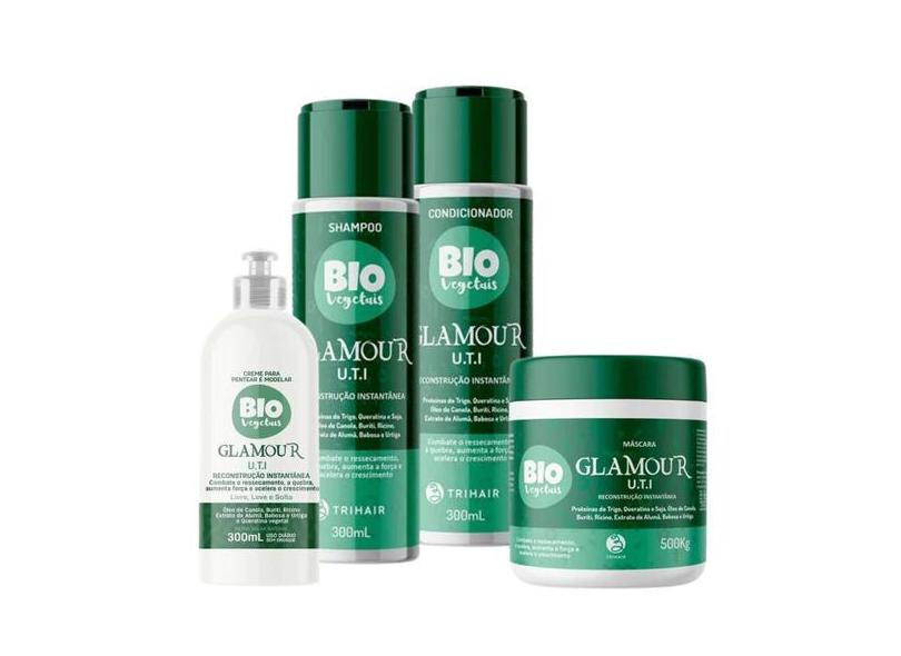 Kit Sh+Cond+Mask+Creme Pentear 300ml Biovegetais Uti Glamour - Trihair