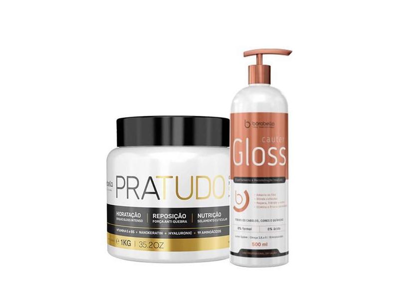Máscara Pratudo 1Kg Cronograma Capilar + Cauter Gloss 500ml Espelhamen