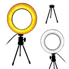 Iluminador Ring Light LED Tripe Mesa Portatil Controle Usb Luz Quente/Fria