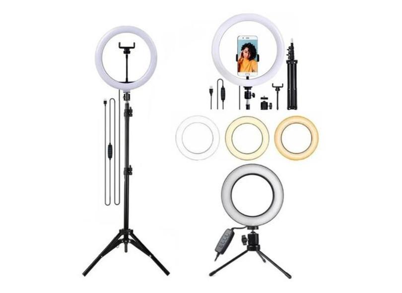 Kit Iluminação Led Ring Light Tripé Mesa Iluminador Profissional Para Vídeos Youtube