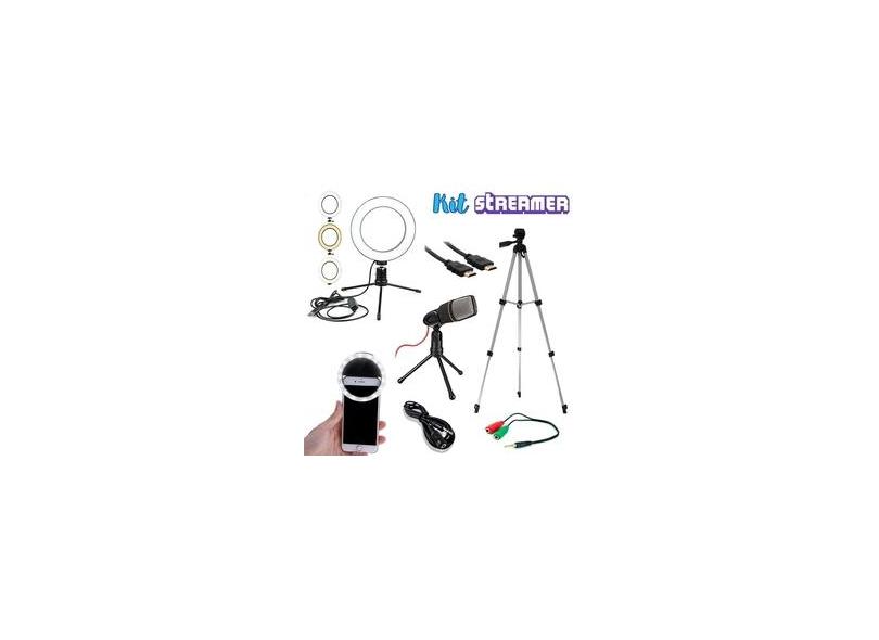 Kit Streamer Youtuber 1 Tripé Microfone Ring Light