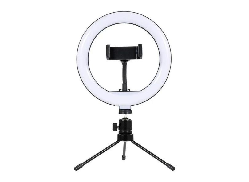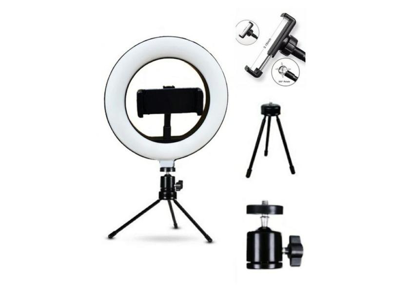 Ring Light Lampada Luz Led Iluminador Anel 16cm 6 Poleg. Make Fotos c/ Tripé com Suporte Articulado central