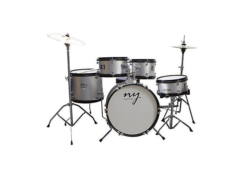 Bateria Acústica Infantil Junior 2T Prata com Banco New York