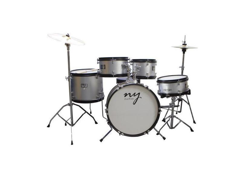 Bateria Acústica Infantil Junior 2T Prata Com Banco New York - Ny-F1rs