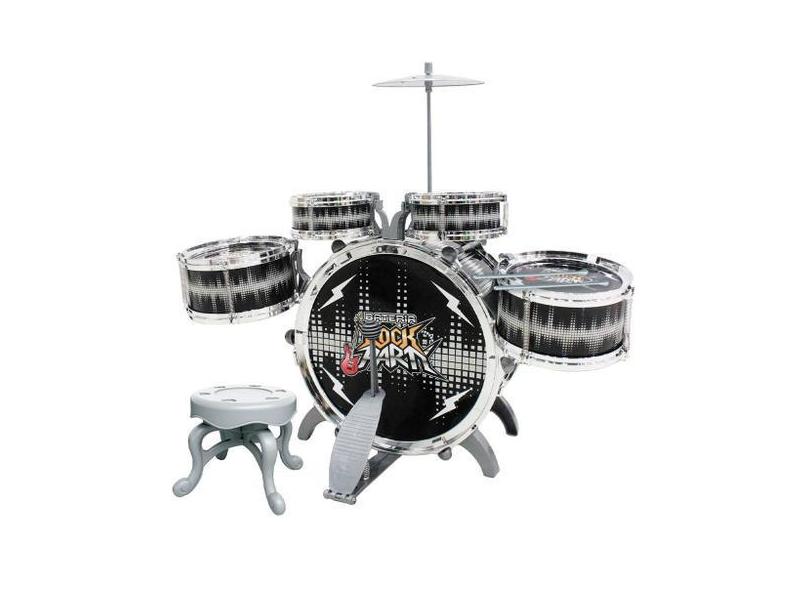 Bateria Infantil Rock Party Preta com Baquetas e Banco DMT6066 - Dm To