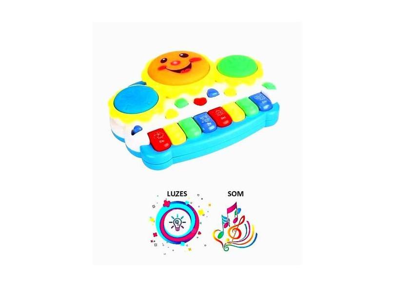 Brinquedo Infantil Educativo Piano Tambor Com Musica E Luz Teclado Beb