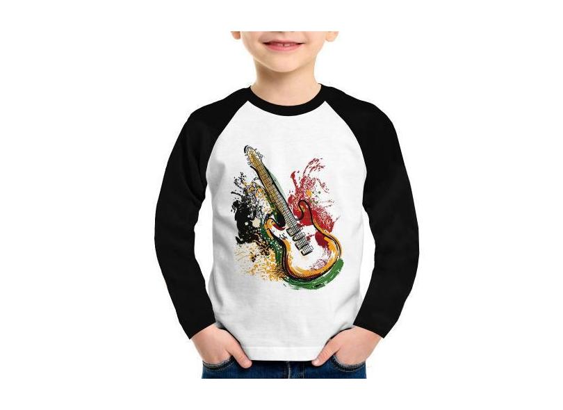 Camiseta Raglan Infantil Guitarra Reggae Manga Longa - Foca na Moda, B