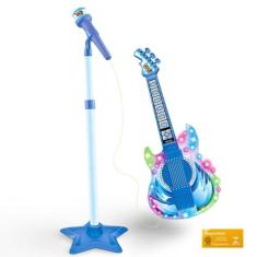 Guitarra Com Microfone Pedestal Infantil Rock Show Dm Toys Com Luzes S