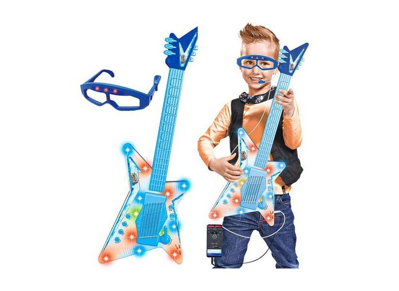 Guitarra Com Óculos Microfone Infantil Som E Luz Conecta Celular Rock