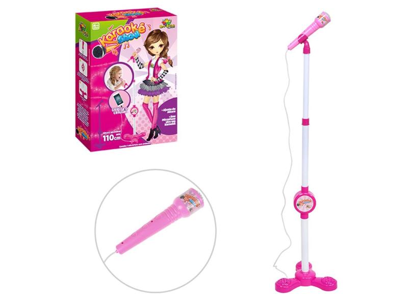 Microfone Infantil Rosa Brinquedo Karaoke Com Pedestal Som - Art Brink