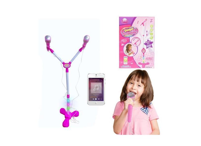 Microfone Para Criança Infantil Com Pedestal Rosa Toca Mp3 - Bs7 Compr