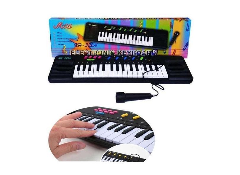 Teclado Musical Infantil Com Microfone Preto Musica Crianças - P&D