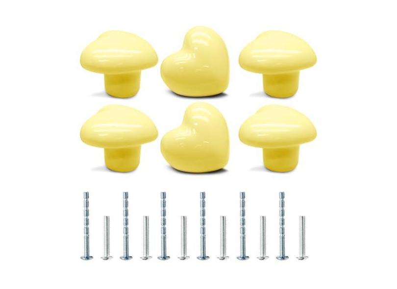 Cionyce 6 peças puxadores de armário de cerâmica em forma de coração puxadores de armário de armário bonitos puxadores de armário de cozinha, pequenos puxadores de armário de armário de hardware para