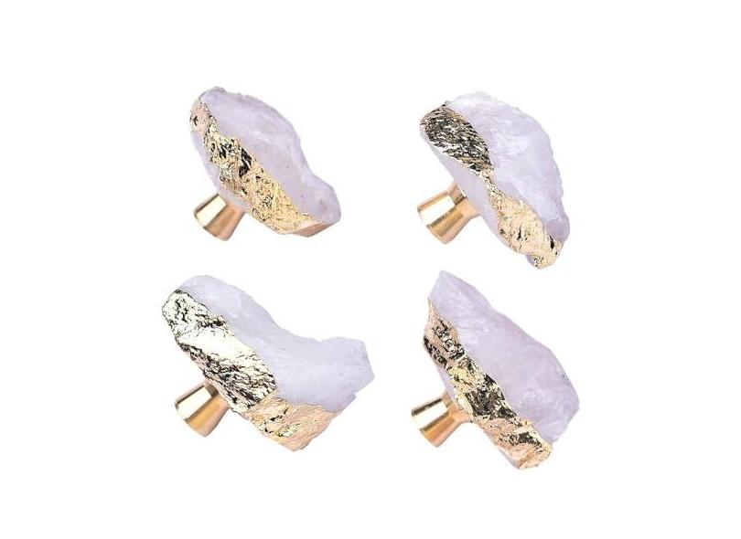 FZBHRO Puxadores de armário de pedra de cristal branco puxadores de gaveta de geodo puxadores decorativos banhados a ouro para decoração de escritório em casa, pacote com 4