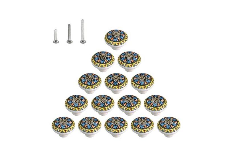 HUAMULAN Pacote com 15 puxadores de cerâmica retrô Boheimian em formato de botão de cômoda vintage cogumelo boho cozinha pétala armário puxa armário armário guarda-roupa gaveta maçanetas brilhantes