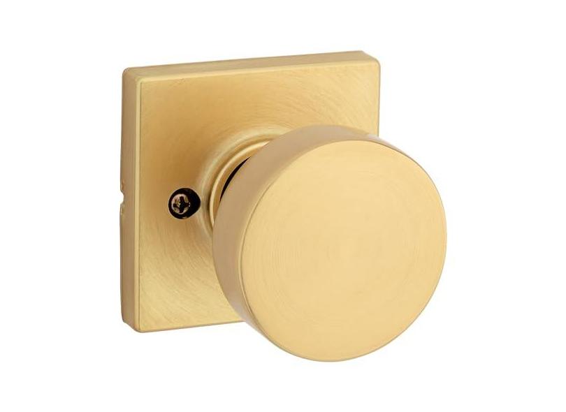 Kwikset Maçaneta falsa Pismo, maçaneta de um lado para armários, portas duplas francesas e despensa, puxador interno de empurrar/puxar de latão acetinado