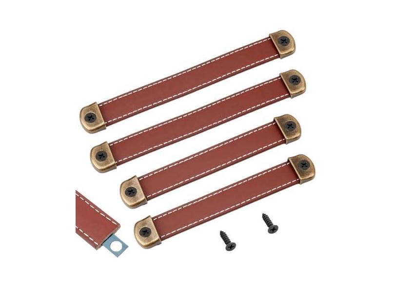 NBEADS 4 conjuntos de puxadores de couro de 2 tamanhos, puxadores de gaveta de couro com furo duplo, puxadores de gaveta feitos à mão, puxadores de gaveta de porta de armário com achados de liga para