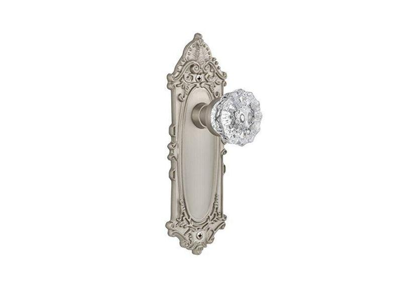 Nostalgic Warehouse 702107, passagem-6 cm, placa vitoriana de níquel acetinado com puxador de vidro de cristal