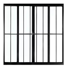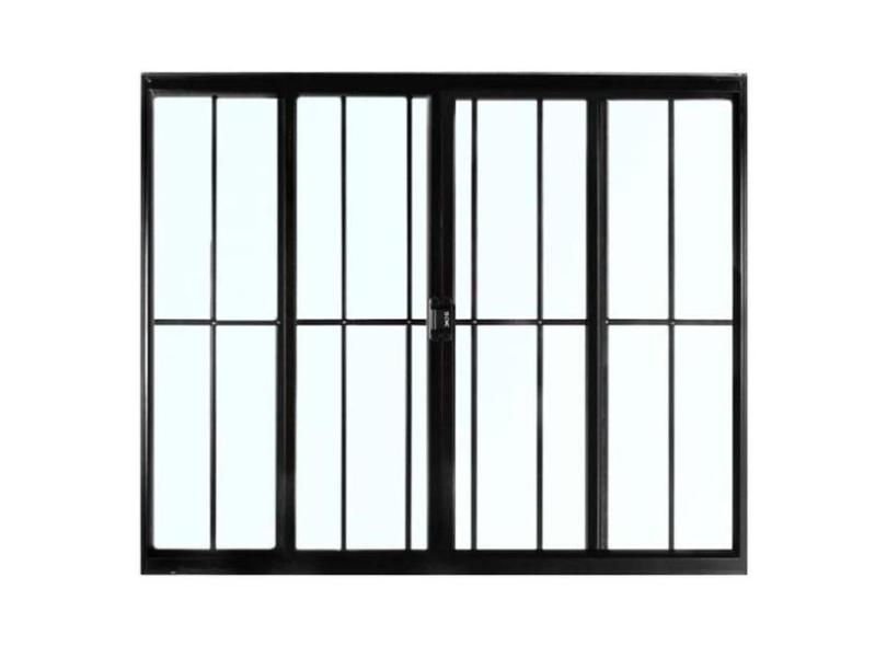 Janela De Alum nio Preto Vitro De Correr 4 Folhas Com Grade C