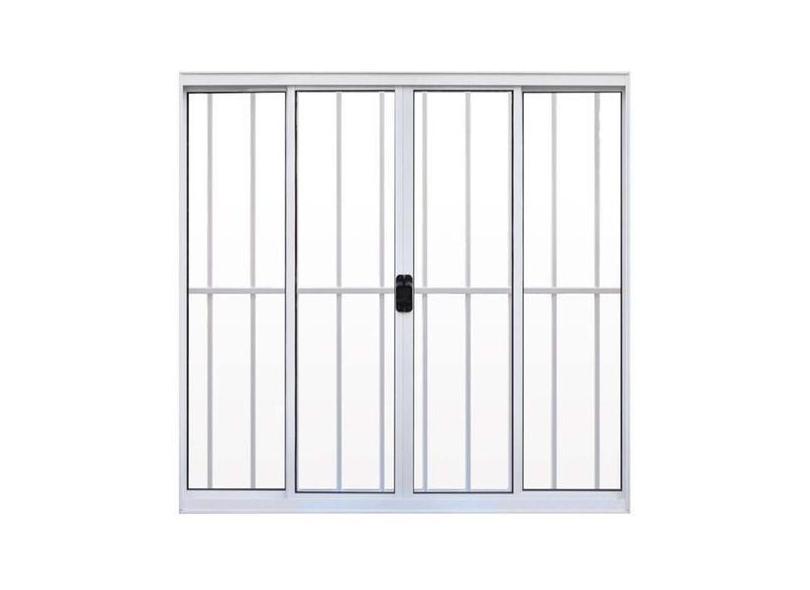 Janela de Alumínio Branco Vitro de Correr 4 Folhas Com Grade Hale Esqu