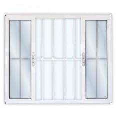 Janela de Alumínio de Correr 100x200cm 4 Folhas 2 Fixas com Grade e Vi
