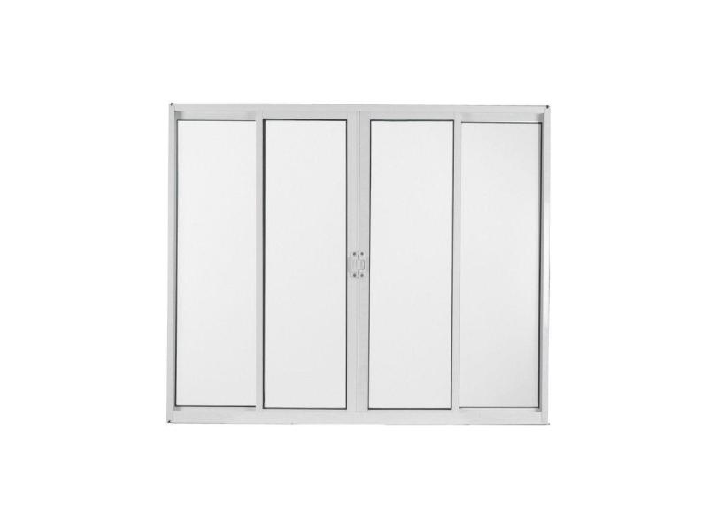Janela de Alumínio de Correr 100x200cm 4 Folhas 2 Fixas com Vidro Liso Linha Soft MGM Branco