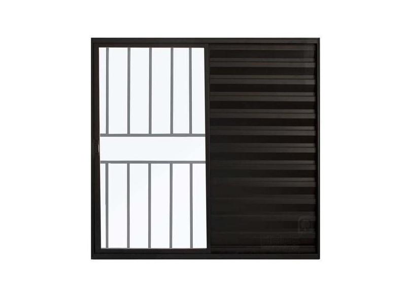 Janela de Alumínio Preto Veneziana de Correr 3 Folhas Com Grade Hale E
