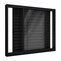 Janela de Alumínio Veneziana 100 x 120 x 10 cm Preto 3 Folhas Riobras