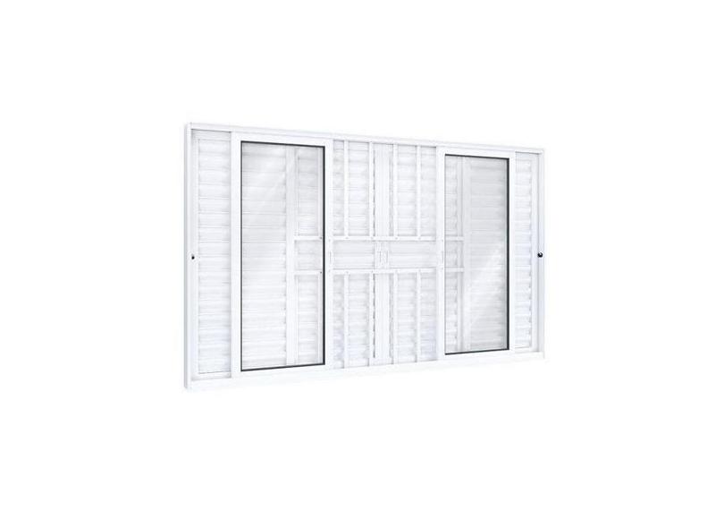 Janela de Alumínio Veneziana 100x200cm 4 Folhas Móveis 2 Fixas com Gra
