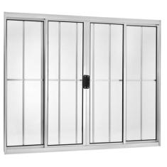 Janela de Correr 4 Folhas com Grade Central Brilhante 100x200cm Ecosul Esquadrisul