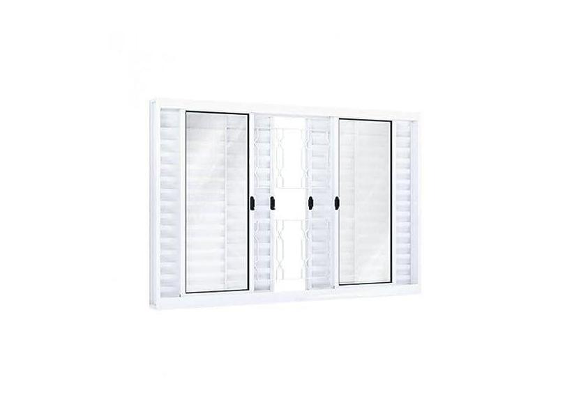 Janela de Correr Aço Veneziana 6 Folhas com Grade Mosaico Riobras 100cmx200cm Branco
