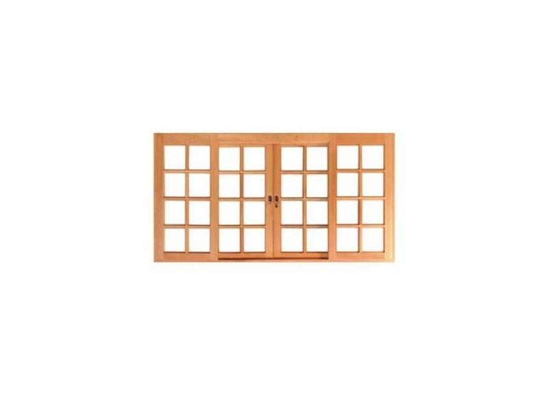 Janela de Correr Quadriculada 110cm Reta 4 Folhas em Madeira Maciça Ce