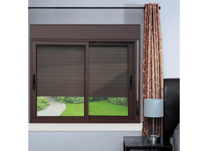 Janela Elite 2 Folhas Moveis com Persiana Integrada 120 X 120 Vidro Liso Corten
