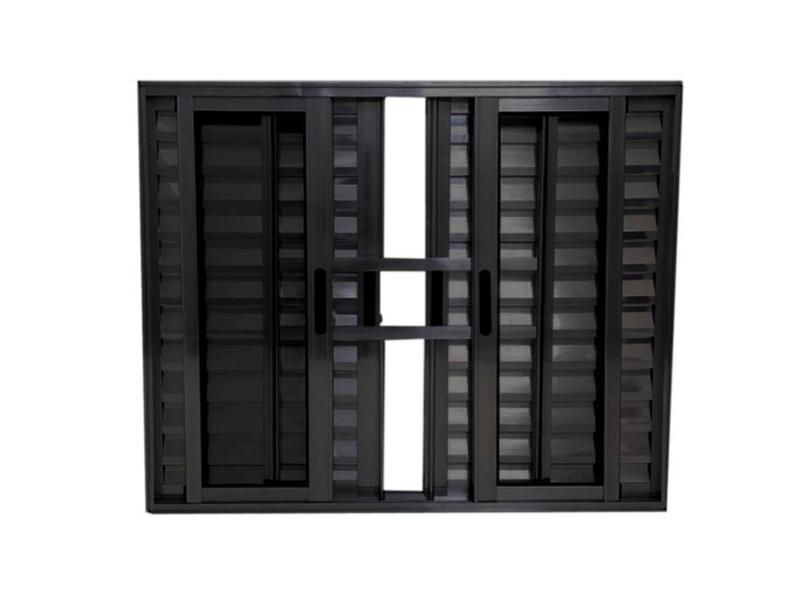 Janela Veneziana 6 Folhas Alum nio Preto Linha 25 Com Grade -