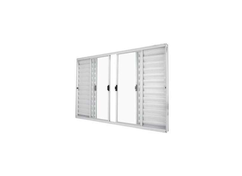 Janela Veneziana Abertura Central 6 Folhas Vidro Liso 100x150cm Exclus