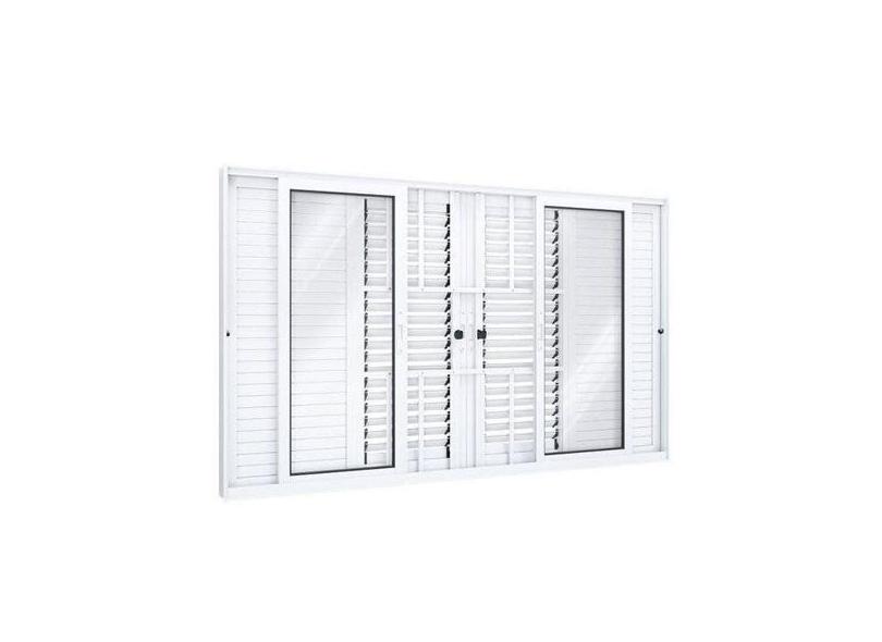 Janela Veneziana Alumínio de Correr Central Flex 4 Folhas Móveis e 2 F