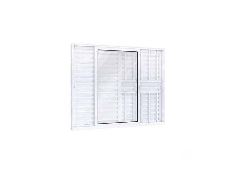 Janela Veneziana Alumínio Lateral 2 Folhas Móveis 1 Fixa Lucasa Eccellente 100cmx150cm Branco