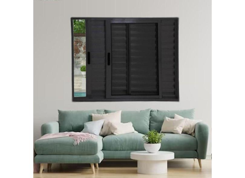 Janela Veneziana de Alumínio 3 Folhas 120 x 120cm Linha 25 Esquadrias Bergame Preto