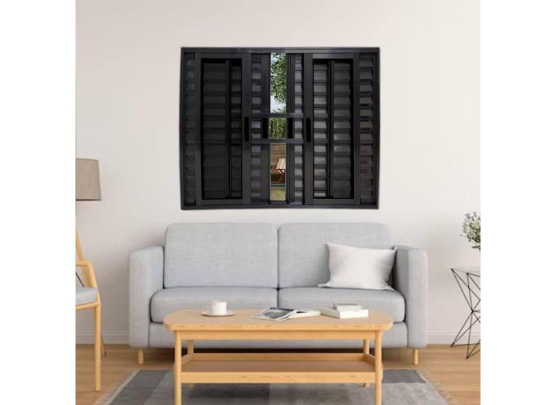 Janela Veneziana de Alumínio 6 Folhas 120 x 150cm Linha 25 com Grade Esquadrias Bergame Preto