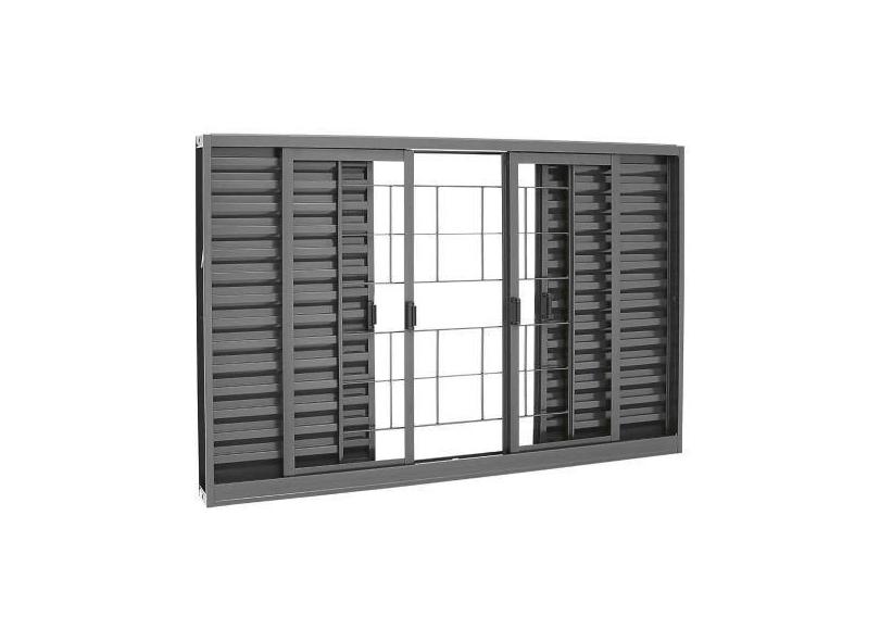 Janela Veneziana Grade Quadriculada em Aço 120 x 200 x 12 cm 6 Folhas
