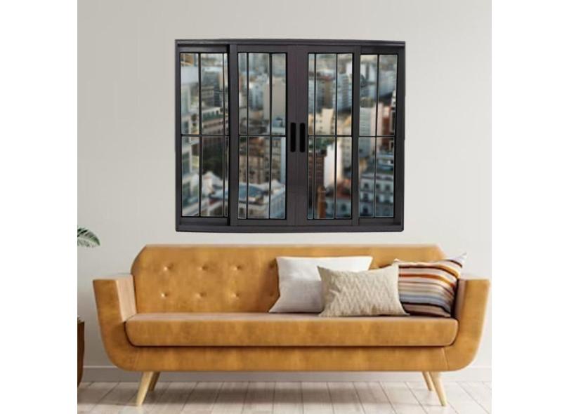 Janela Vitrô de Alumínio 4 Folhas Preto 100 x 120cm Linha 25 C/grade Preto