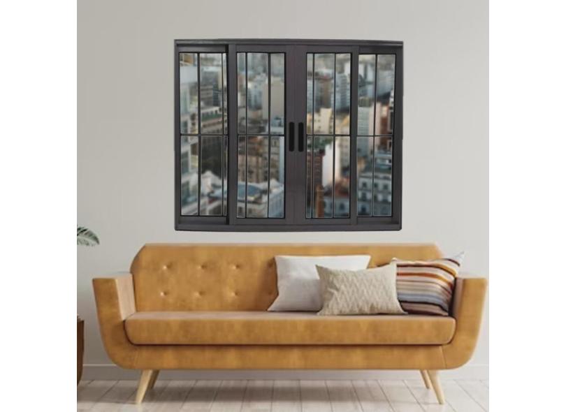 Janela Vitrô de Alumínio 4 Folhas Preto 100 X 120cm Linha 25 C/grade