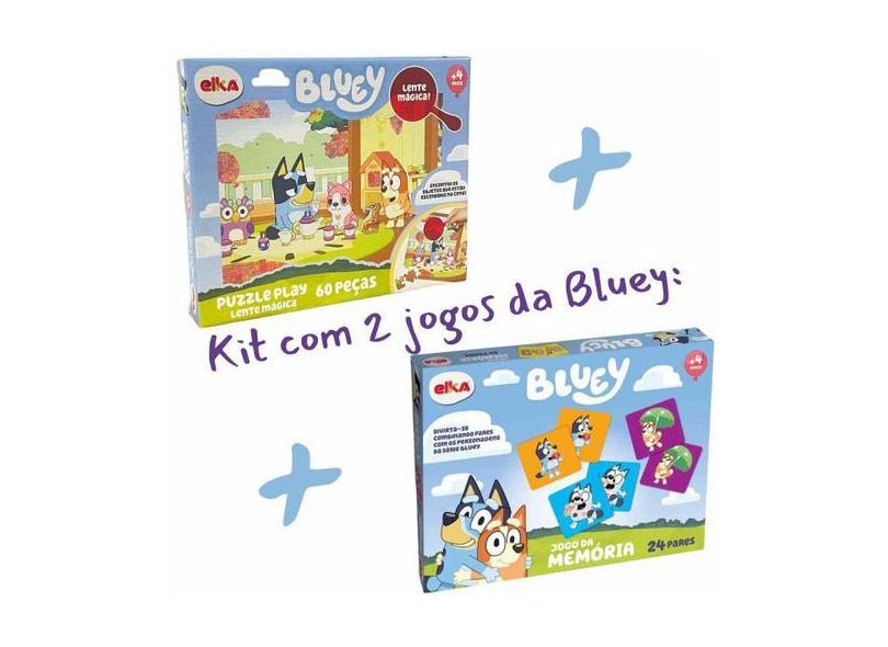 Kit 2 Jogos Bluey: Jogo Da Memória 24 Peças + Quebra Cabeça 60 Peças C